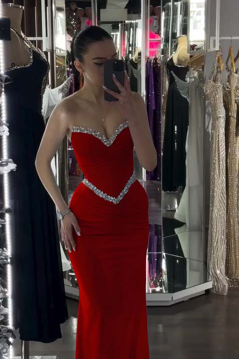 Sleeveless Strapless Long Mermaid Prom Dress With Sequin Pleated