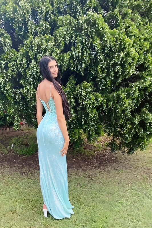 V-neck Spaghetti Strap Side Slit Prom Dress