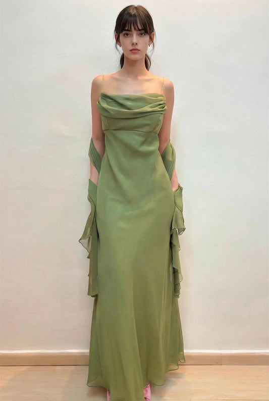 Elegant Bateau Pleated Chiffon Sage Green Prom Dress Party Dress