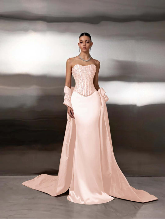 Strapless Sweetheart Sleeveless Long Mermaid Prom Dress With Gloves