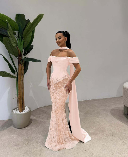 Off the Shoulder Strapless Sleeveless Long Prom Dress With Sequins