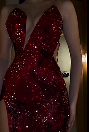 Stunning Red Sequins Strapless Sleeveless Long Split Prom Dress with Beadings