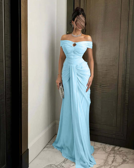 Chiffon Off-The-Shoulder Strapless Sleeveless Long Mermaid Prom Dress With Ruffles And Pleated